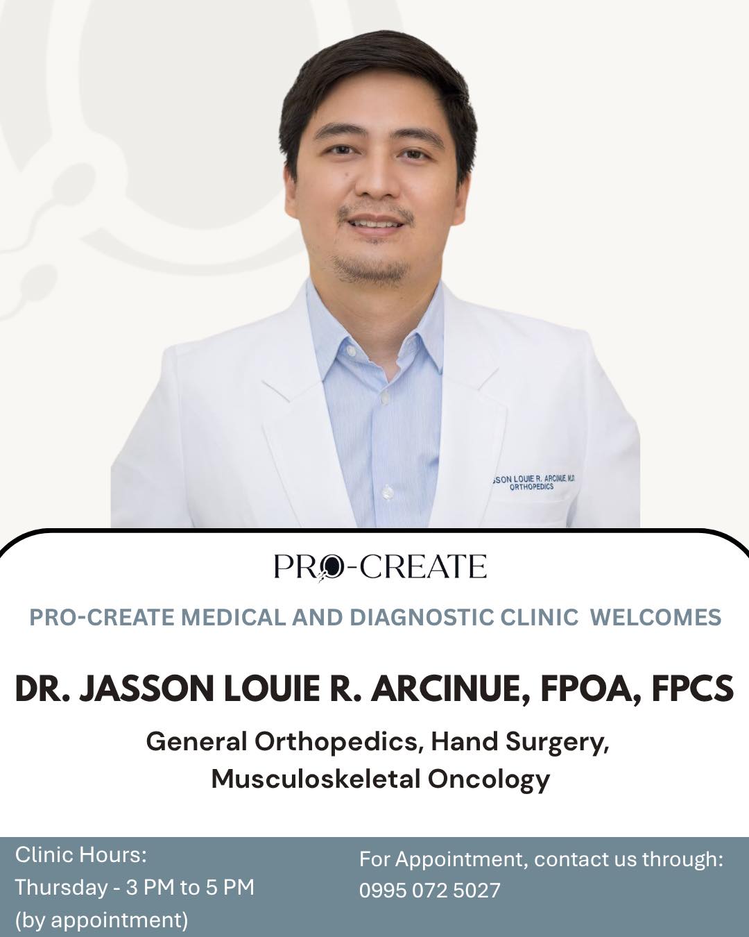 Patients may visit Pro-Create’s Multi-Specialty Clinic or contact the clinic directly to schedule a consultation.